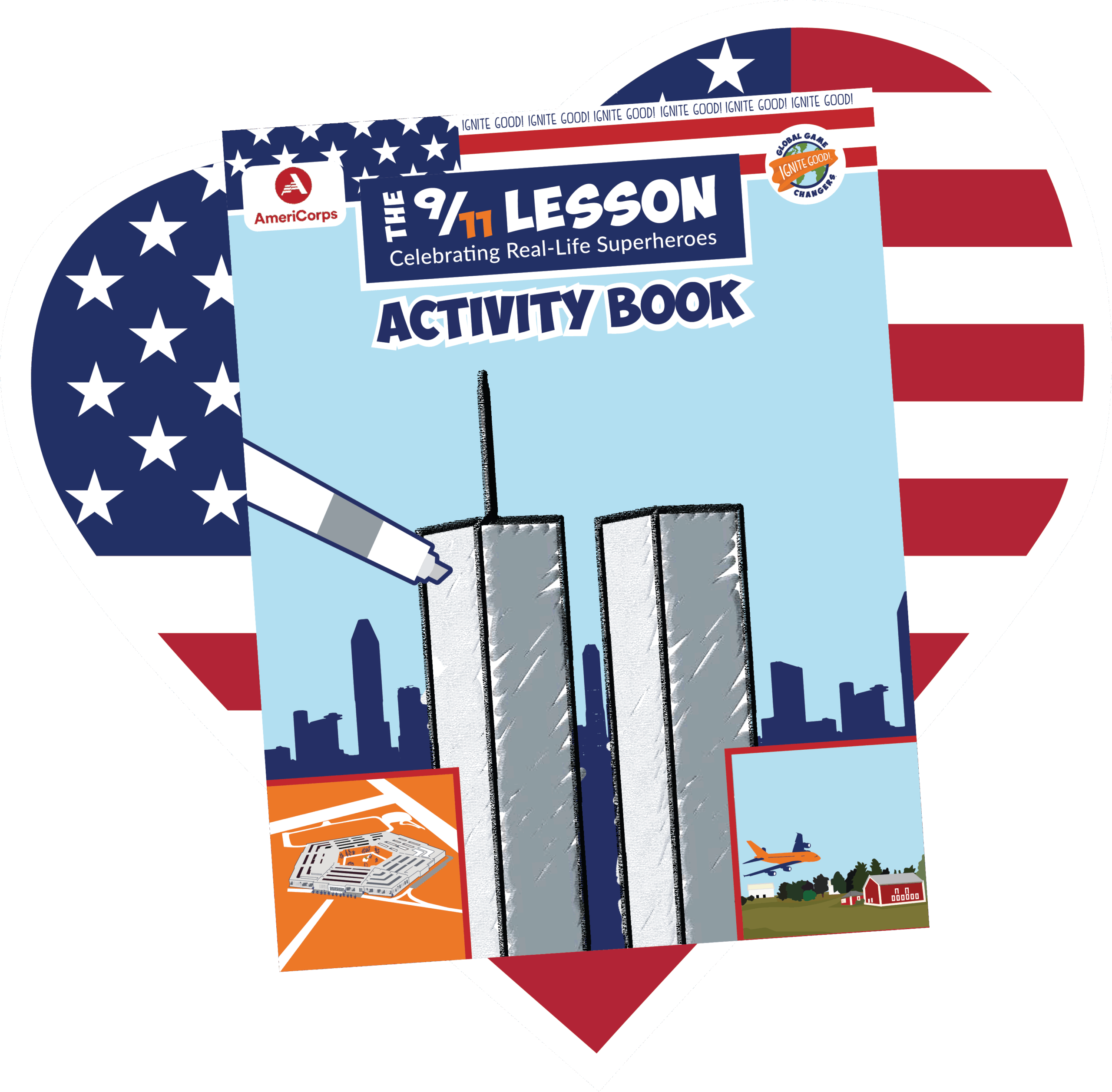 9/11 Individual Hero Kit – Teach the history, honor the heroes, and inspire action! Includes a 34-page activity book, chalk pack, and fabric cape, plus the inspiring storybook In Never Forget 9/11: Love Always Wins. Perfect for combining learning, creativity, and community service.